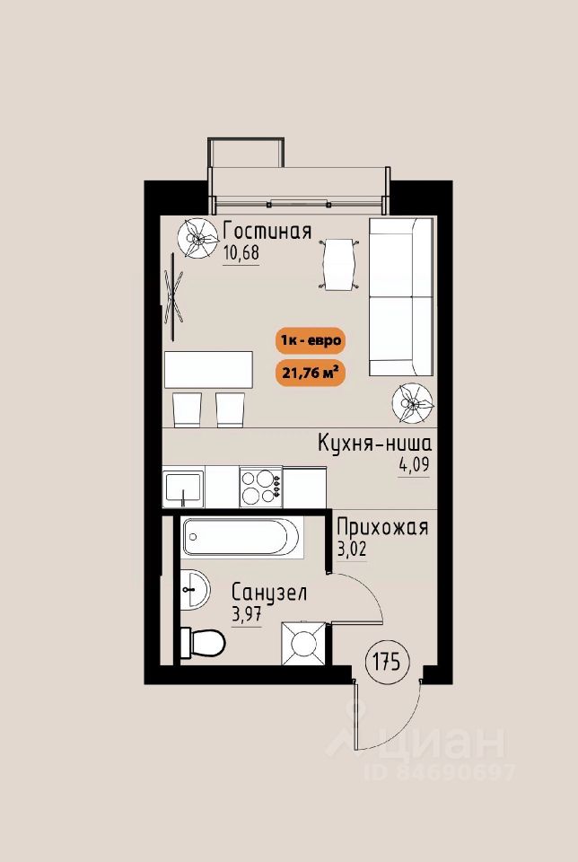 21 м² · Этаж 14 из 17