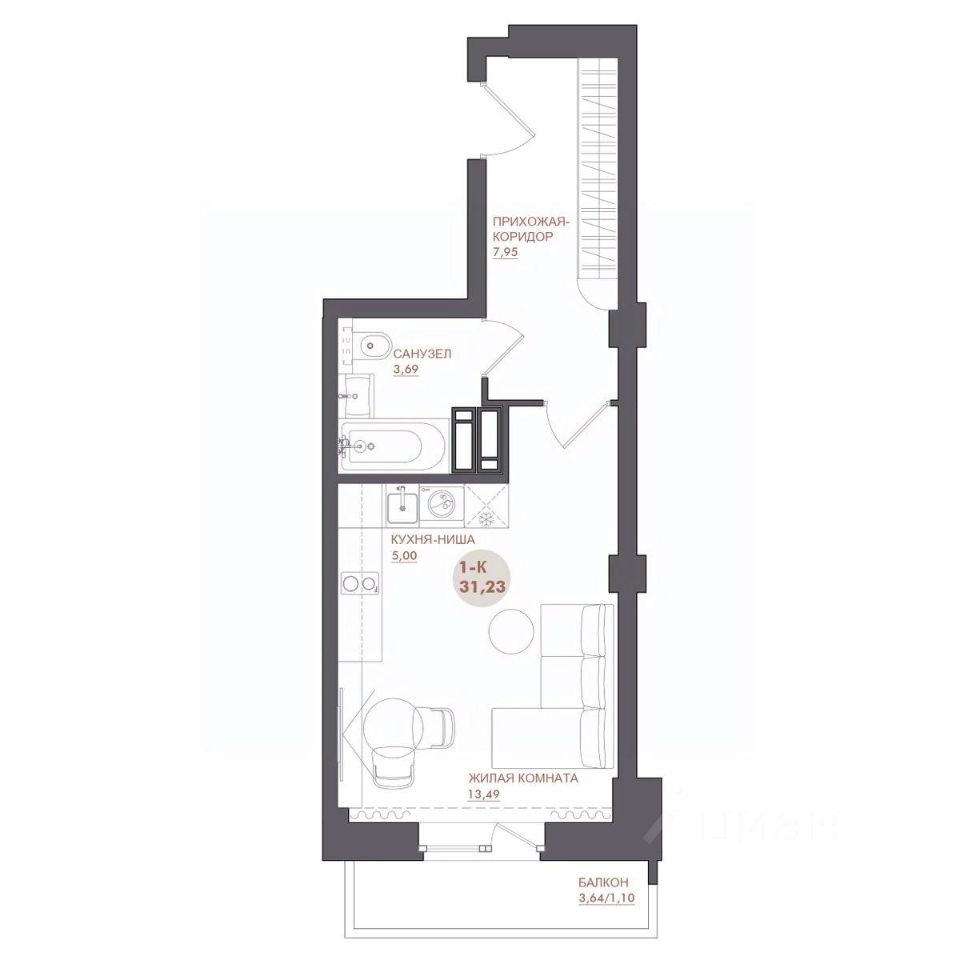 31 м² · Этаж 7 из 17