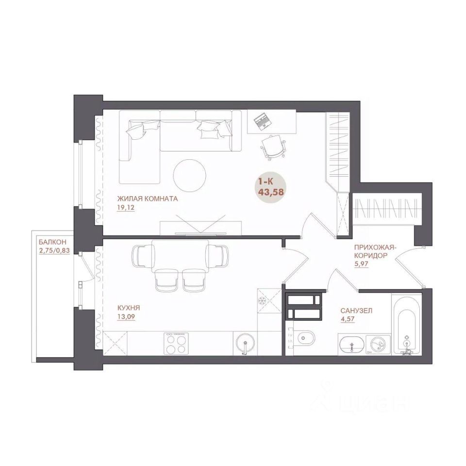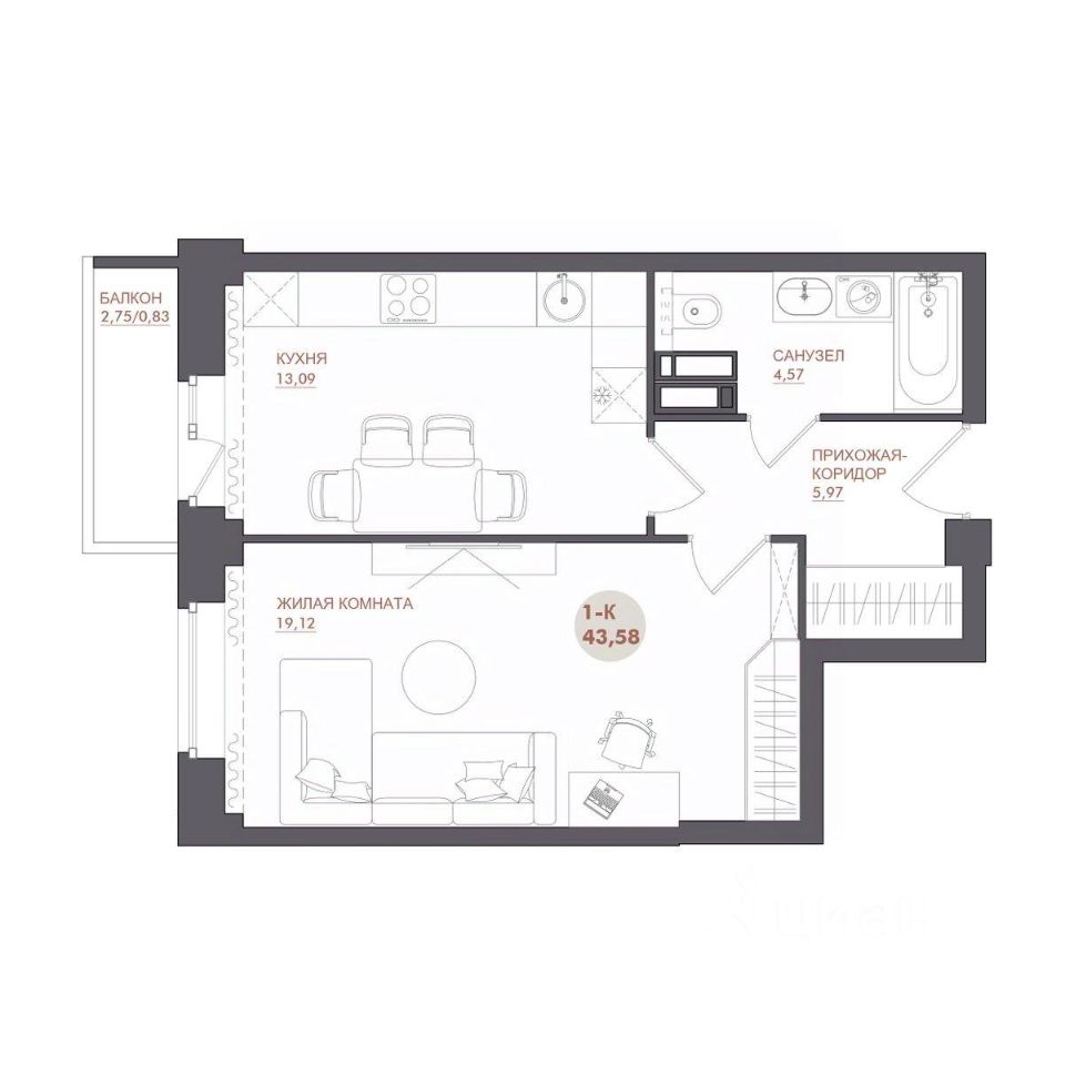 43 м² · Этаж 4 из 17