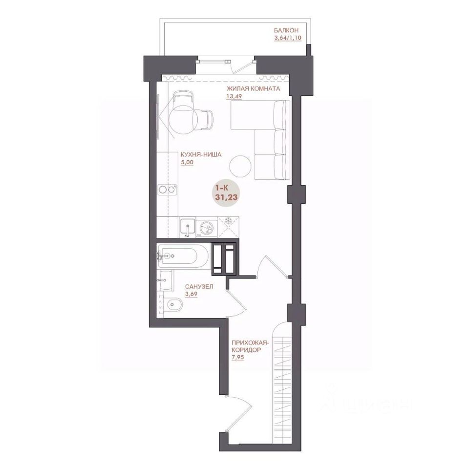 31 м² · Этаж 3 из 17