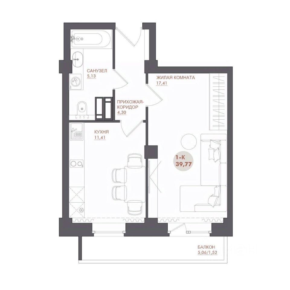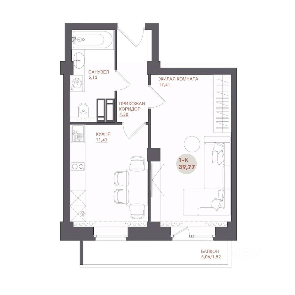 39 м² · Этаж 6 из 17