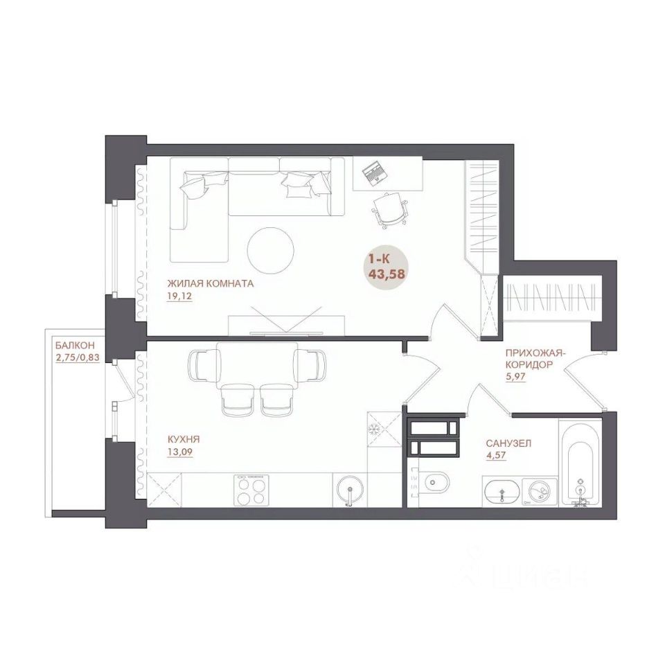 43 м² · Этаж 6 из 17
