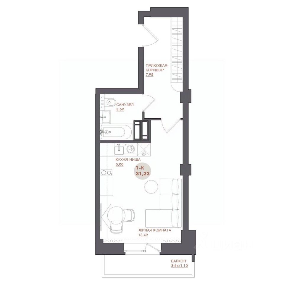 31 м² · Этаж 6 из 17