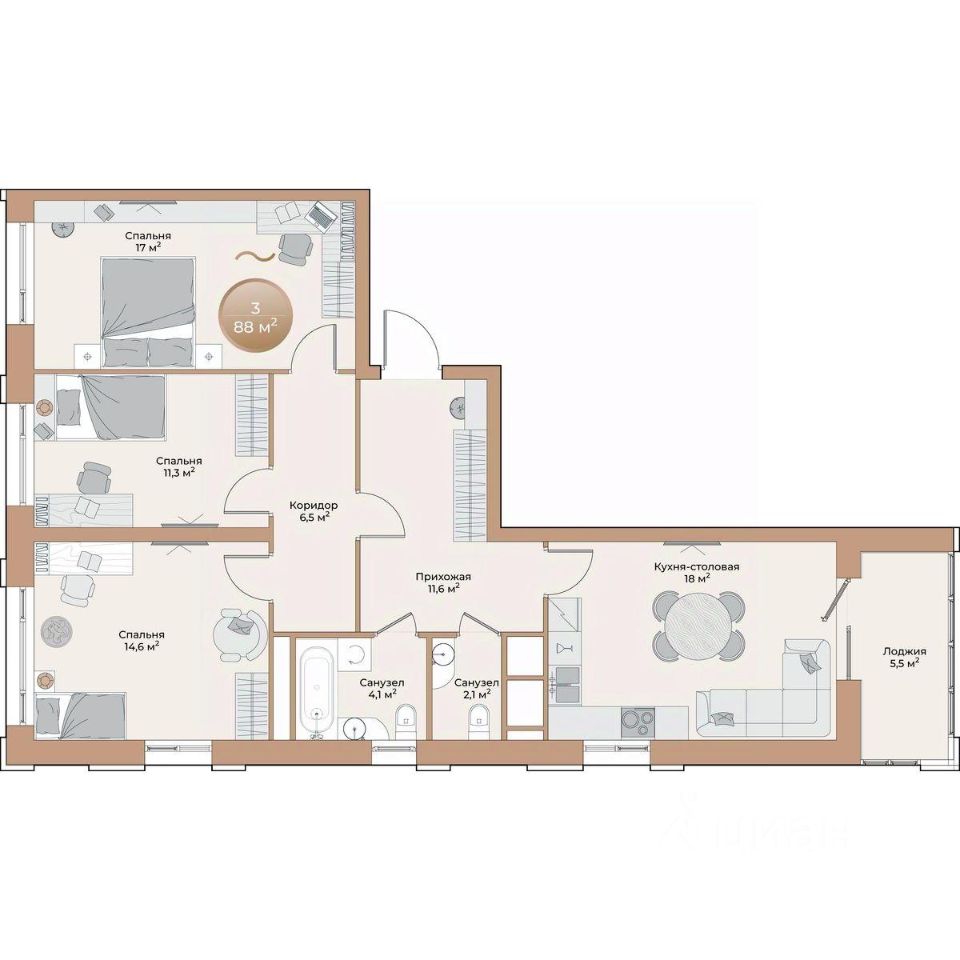 88 м² · Этаж 8 из 24