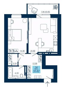 Продаётся 2-комнатная квартира в строящемся доме (Дом 4), срок сдачи: I-кв. 2026, общей площадью 55.82 кв.м., на 18 этаже. Новый жилой комплекс ''Уютные дома на Взлётке'' от Специализированного застройщика ООО ''Уютный дом 2014'' расположен по адресу: г. Красноярск, по ул. Аэровокзальная.