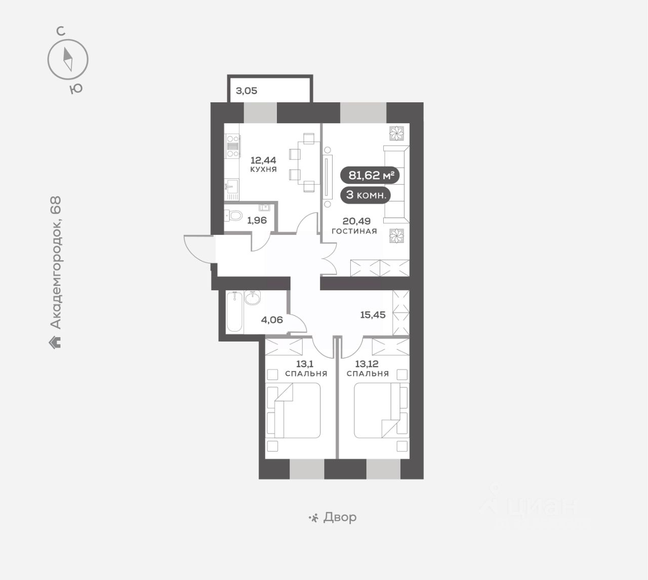 Академгородок, Дом 3, квартира 168. Новый Академгородок - сити-район из восьми кирпичных домов-кварталов на берегу Енисея.Близость природы, закрытые дворы и свой собственный Академ-парк. Для тех, кто хочет жить рядом с городом, но дышать чистым воздухом. Квартира сдается в отделке ''белый куб''. Выровнены и оштукатурены стены, бетонная стяжка на полу, натяжной потолок, полная электроподготовка и установлена базовая сантехника. Вы получаете ключи от квартиры, подготовленной к воплощению ваших фантазий.