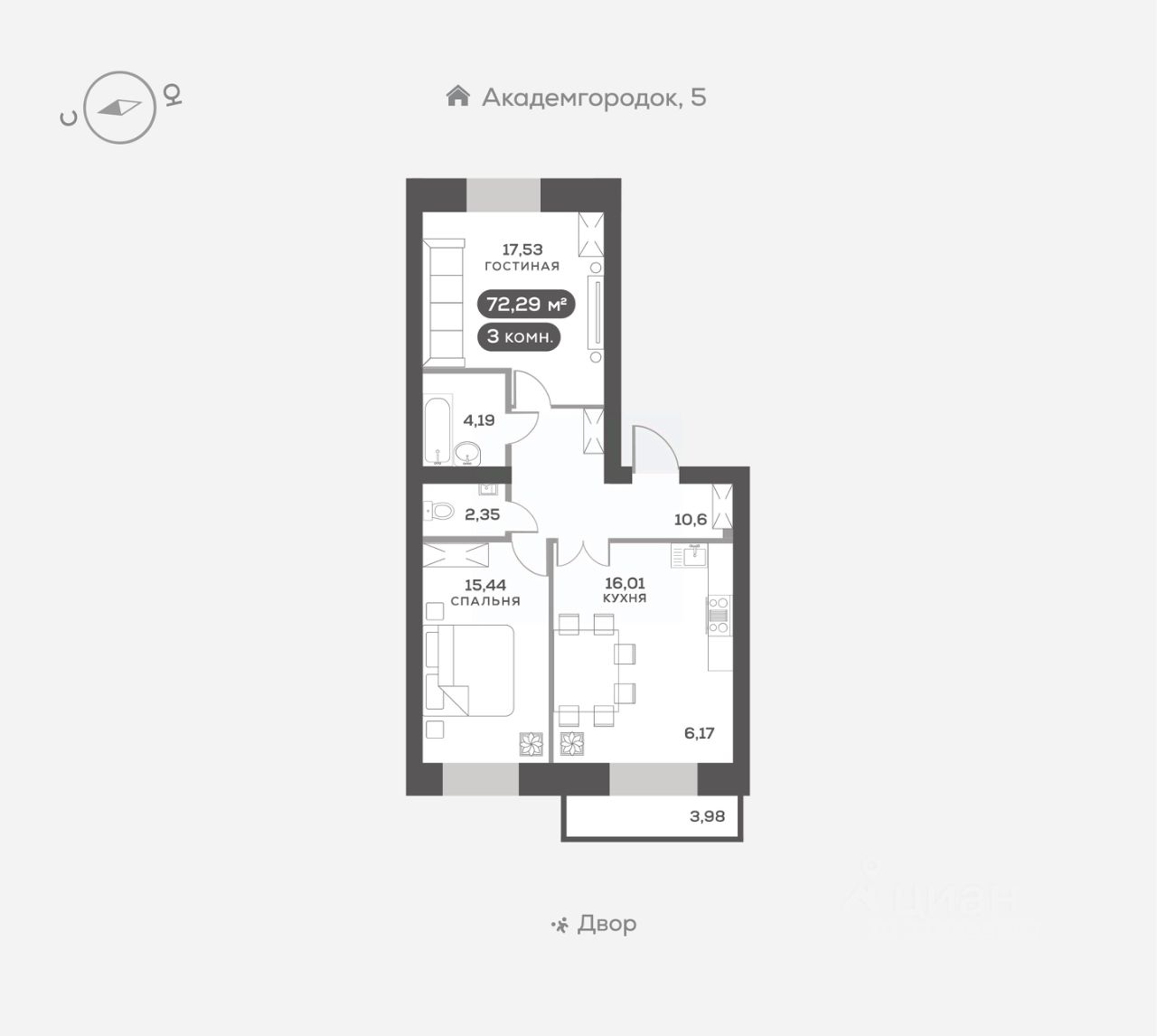 3-к, Академгородок, гп 3 Показать на карте