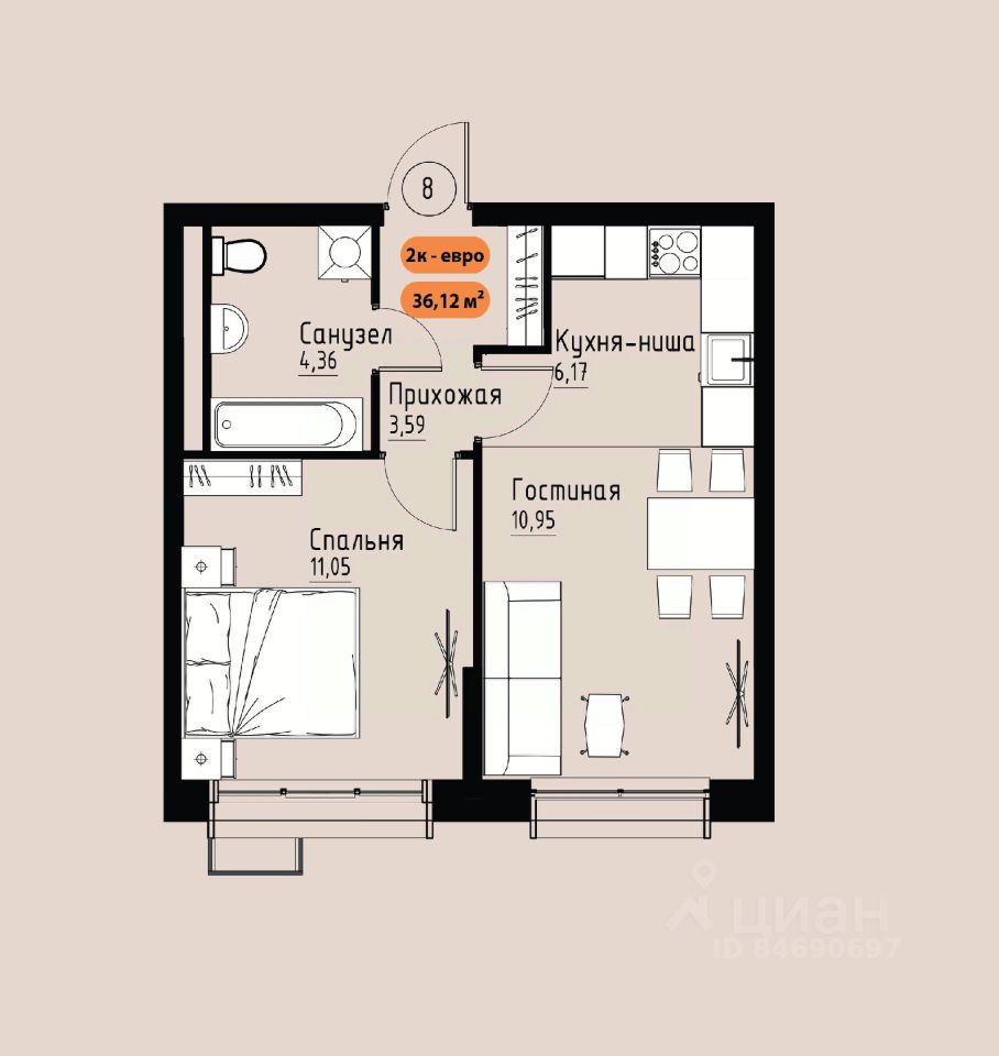 36 м² · Этаж 6 из 17