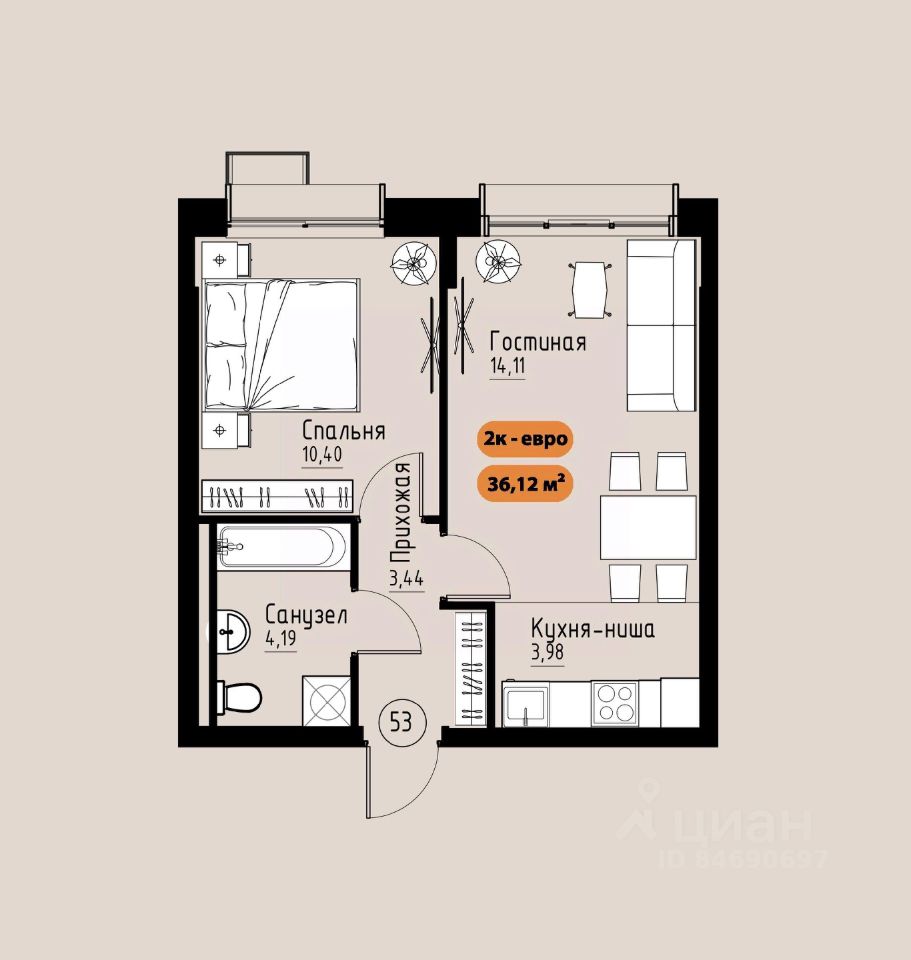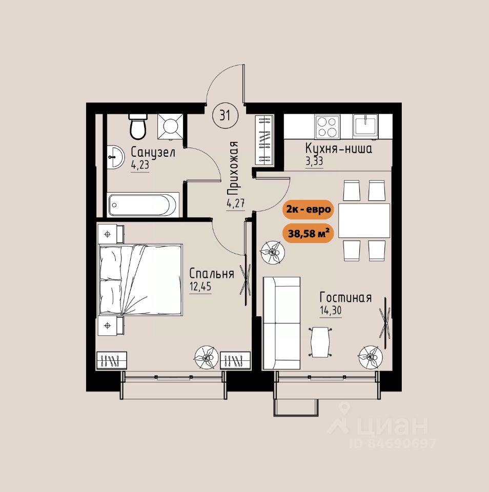 38 м² · Этаж 4 из 17