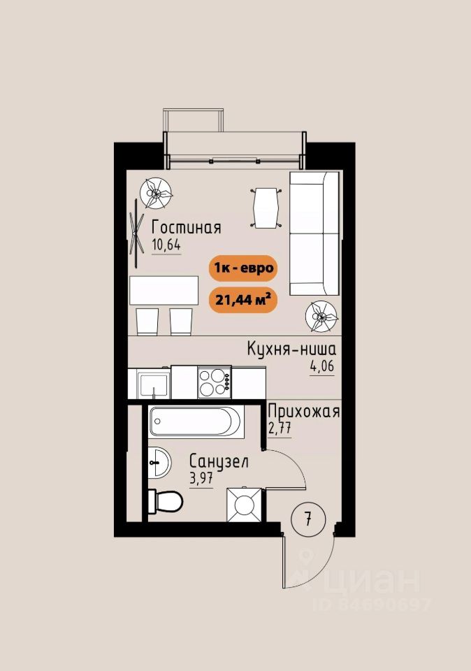 42 м² · Этаж 4 из 17