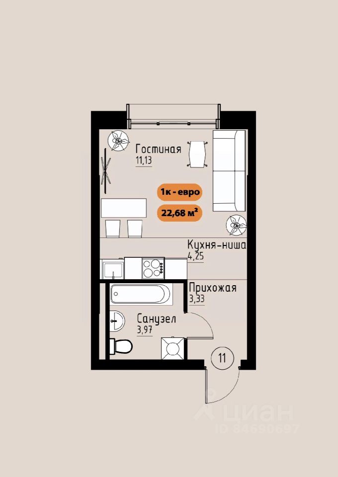 37 м² · Этаж 4 из 17
