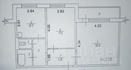 2-к, Яблочкова, 8 Показать на карте