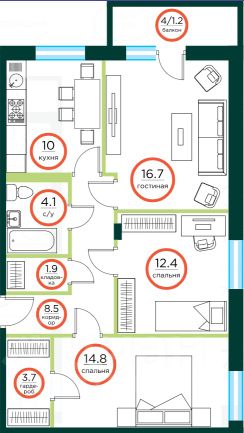 Продаётся 3-комнатная квартира в строящемся доме (ЖК Эко, 3 (Дом 3)), срок сдачи: IV-кв. 2026, общей площадью 78.11 кв.м., на 2 этаже. Жилой комплекс ''Эко'' - это современный жилой комплекс из шести 8-этажных домов, в пригороде Красноярска (р-н Новоленд).В 20-ти минутах езды от ТРЦ ''Планета''. Особенностью нашего комплекса является благоустройство комфортной среды для каждого жителя. На территории планируются зоны барбекю, места для прогулок, медитации и отдыха, кинотеатр под открытым небом и даже своя собственная оранжерея.Квартиры сдаются с улучшенной чистовой отделкой.