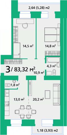 Продаётся 2-комнатная квартира в сданном доме (Корпус 2), срок сдачи: II-кв. 2023, общей площадью 66.63 кв.м., на 5 этаже. Новый жилой комплекс - это классический кирпичный дом с толщиной стен 820 мм, с просторными квартирами расположен на ул.Березина, 82 Д, в спальном районе микрорайона Покровский. Жилой дом будет располагаться во дворе, в далеке от шумных магистралей и загазованных улиц.Жилой комплекс состоит из двух жилых домов. Дом 1 представляет собой пяти подъездный 9-этажный кирпичный дом на 216 квартир. Во дворе дома проектом предусмотрена подземная автопарковка.Наша компания стремится удовлетворить потребности всех жителей города. Отличительной чертой проекта является разнообразие планировочных решений. От 1-комн квартир стандартной планировки, 2-комн - крупногабаритных квартир свободной планировки до 3-комн квартир с большими просторными комнатами и 4-комн - где сможет разместиться большая счастливая семья. Мы реализовали мечту каждой хозяйки - это кухня с выходом на балкон.Территория дворового пространства будет оборудована игровыми комплексами для детей разного возраста, спортивной и гимнастической площадками, с современным и безопасным покрытием. Проектом предусмотрено озеленение территории. Дворовое пространство будет заполнено множеством кустарников, медоносными липами и душистой сиренью.На первых этажах ЖК размещаются нежилые помещения, в которых в будущем будут располагаться организации сферы услуг, имеющие самостоятельные выходы, обособленные от жилых подъездов Жилого комплекса.Однокомнатные квартиры площадью от 36,71 кв.м.Двухкомнатные квартиры площадью от 54,10 кв.м.Трехкомнатные квартиры площадью от 82,31 кв.м.И четырехкомнатные квартиры площадью от 115,23 кв.м.Из окон верхних этажей с восточной стороны дома, открывается прекрасный вид на Енисей. С западной стороны - на Покровскую гору.Инфраструктура:Покровка - молодой, динамично развивающийся район. Остановки общественного транспорта расположены на улицах Мужества и Линейная, находятся в шаговой доступности. Удобное местоположение дома позволит в течение 10 минут добраться до центра, до микрорайона Взлетка и в Октябрьский район.Рядом, со строящимся ЖК ''На Березина'' находятся:Образование:Во дворе ЖК расположен государственный детский сад (Мужества, 22Д),- 2 государственных детских сада: Линейная, 76Д, Березина, 88,- 4 частных детских сада: Линейная, 86, Линейная, 88, Линейная, 99, Мужества, 23,- общеобразовательная школа, МАОУ СШ 153: Линейная, 99Г.Здравоохранение:- детская поликлиника: Шахтеров, 25,- 6 стоматологических клиник,- 4 аптеки,- 4 медицинских центра,- Клиника НИИ медицинских проблем Севера: Шахтеров, 25.Спорт:- клуб физической культуры: Линейная, 90,- спортивные и детские площадки,- арена-Север, ледовый дворец: 9 мая, 74,- в скором времени планируется строительство Аквапарка, его возведут в строящемся микрорайоне ''Слобода Весны'' на пересечении ул. Петра Подзолкова и ул. 9 Мая.Другая инфраструктура:- отдел полиции 1: Линейная, 84,- рынок Енисейский,- супермаркеты,