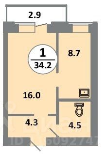 34 м² · Этаж 8 из 14