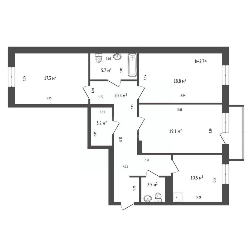 34 м2