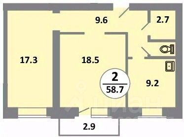 58 м² · Этаж 2 из 14