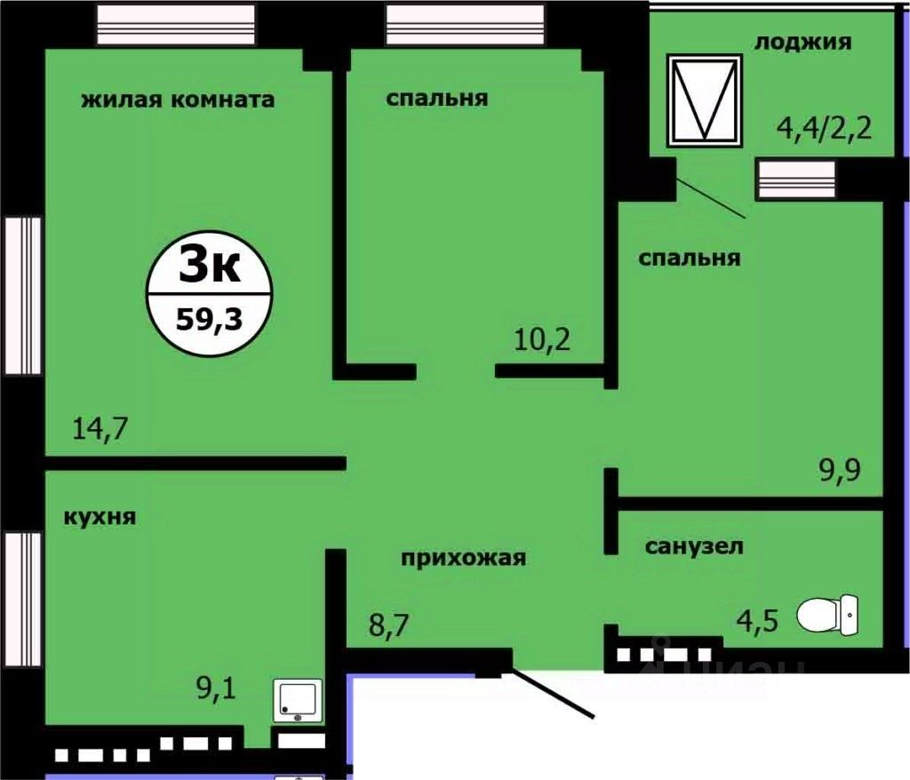 58 м² · Этаж 9 из 19