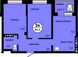 Продаётся 3-комнатная квартира в сданном доме (Лесников, 53 (Панорама, Корпус 2)), срок сдачи: IV-кв. 2024, общей площадью 56 кв.м., на 2 этаже. Дом сдан. Семейная ипотека НЕ ПОДХОДИТ!