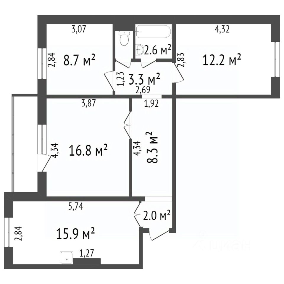4-к, Ястынская, 18 Показать на карте