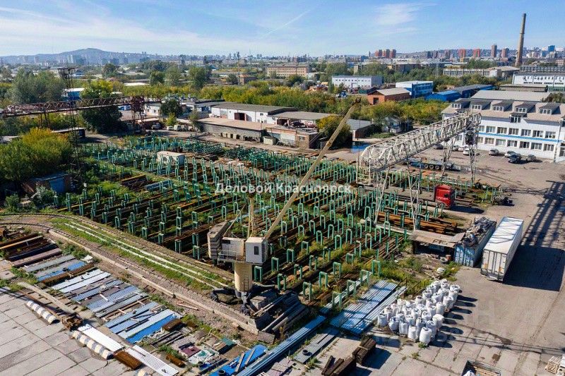 Продаем производственно-складскую базу по адресу: г. Красноярск, ул. 60 лет Октября. Общие характеристики объекта: Земельный участок 2,2 Га. Общая площадь строений 4114 кв. м. На территории: Офисное здание с торговым залом площадью 2577 кв. м: - 2 этажа, - кабинетная система, - оборудована столовая для персонала, - смонтирована система кондиционирования, - установлено видеонаблюдение, - высота потолков 2,5 м, - полы кафель. Холодное складское здание площадью 832,5 кв. м: - ворота в количестве 9 шт., - высота потолков 4м, - полы бетон. Цех площадью - 704,9 кв. м: - высота потолков 4 м, - полы бетон, - можно использовать под склад. Технические характеристики: - электричество 200 кВт, - светодиодное освещение, - смонтирована пожарная сигнализация, - водоснабжение автономное (скважина), водоотведение автономное (септик), отопление автономное. Дополнительная информация: - на территории установлены два козловых крана грузоподъёмностью 20 тонн, - два башенных крана на рельсовых путях грузоподъёмностью 11 тонн каждый, - ж.-д. тупик на 6 вагонов, - закрытая территория, - смонтировано видеонаблюдение по всей территории базы. Персональное мнение: Подобные производственные базы, со своей закрытой территорией, ж.-д. тупиком, всегда имеют повышенный спрос, и расширяет потенциал объекта для ведения производственной или складской деятельности.