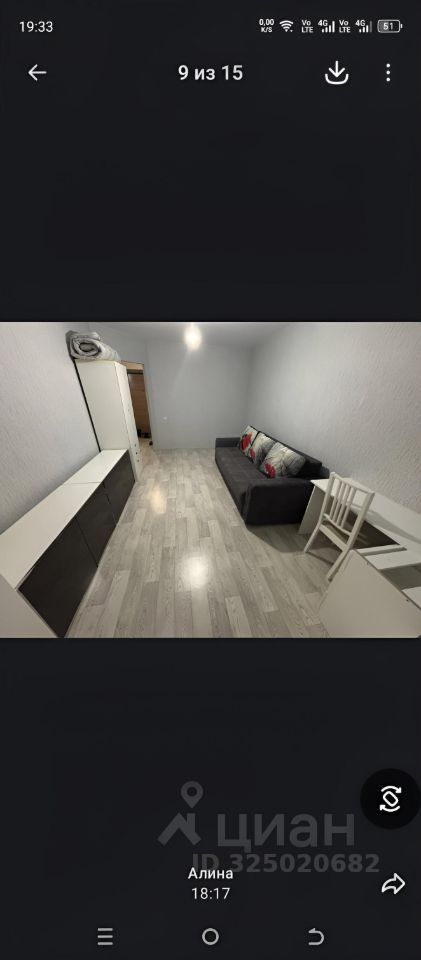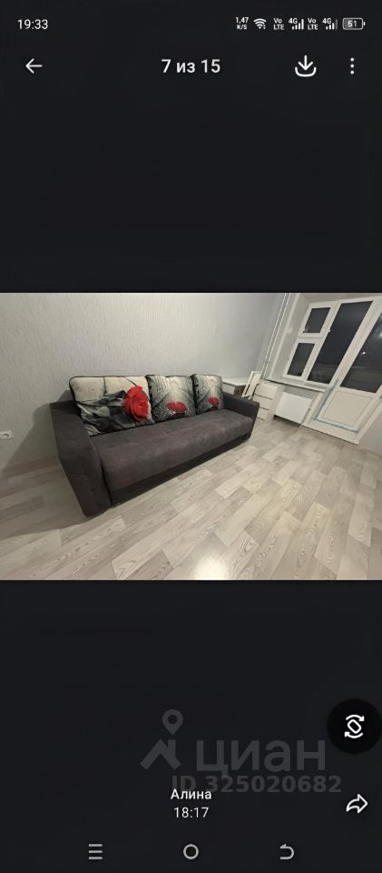 Сдаётся уютная квартира-студия в современном доме. Общая площадь 30 кв. м, жилая площадь — 24 кв. м, кухня — 6 кв. м. Квартира расположена на 15 этаже 17-этажного здания. Окна выходят во двор, обеспечивая тишину и комфорт. В доме есть пассажирский и грузовой лифты, что делает передвижение ещё удобнее. Квартира с косметическим ремонтом, полностью меблирована. На кухне и в комнате есть вся необходимая мебель. Для вашего удобства установлены холодильник и стиральная машина. Санузел совмещённый, в ванной комнате установлена ванна. Есть балкон, где приятно выпить утренний кофе или просто насладиться видом. Дом находится в хорошем состоянии, подъезд чистый и ухоженный. Для автомобилистов предусмотрена наземная парковка. На этаже есть мусоропровод, поэтому можно легко избавляться от бытовых отходов. Район отлично подходит для комфортной жизни: рядом находятся школы, детские сады, клиники и магазины. Всё необходимое — в шаговой доступности. Удобная транспортная развязка: до ближайших остановок общественного транспорта всего несколько минут пешком. Квартира сдаётся от собственника, без комиссии. Залог — 15000 руб. Квартира подойдёт для одного человека или пары. Аренда на длительный срок. СОБСТВЕННИК.