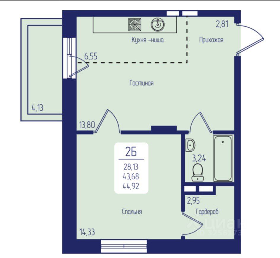40 м² · Этаж 14 из 26