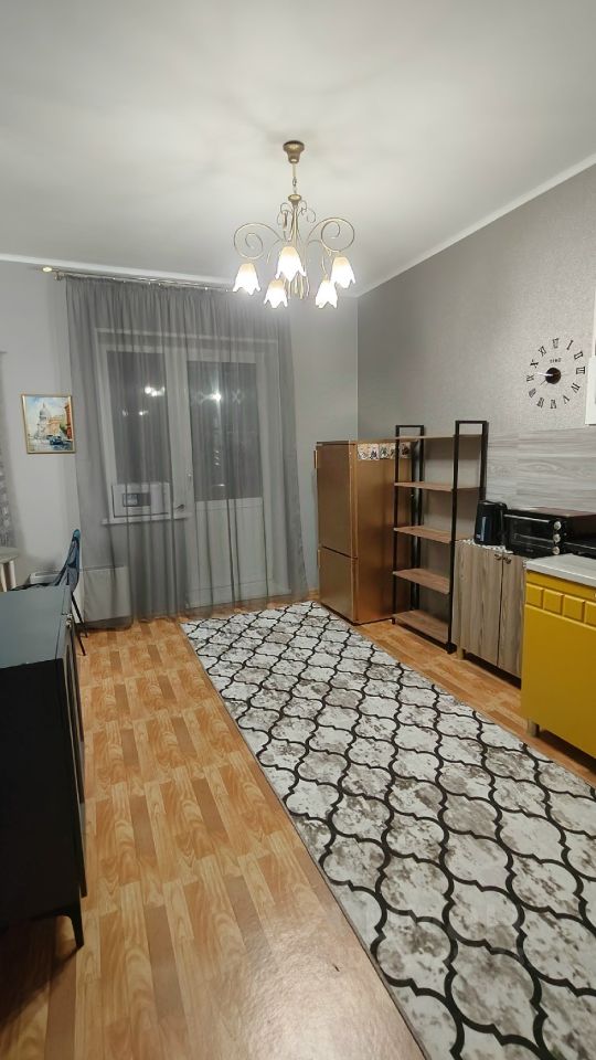 Сдается уютная студия в квартире сделан косметический ремонт. Рядом с домом расположены школы, детские сады и клиники, поэтому все необходимые услуги находятся в шаговой доступности. Для удобства жителей поблизости также есть магазины, где можно совершать ежедневные покупки.