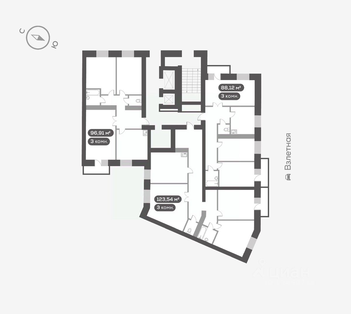 продам 3-к, Взлетная, 48/116 700 000 ₽