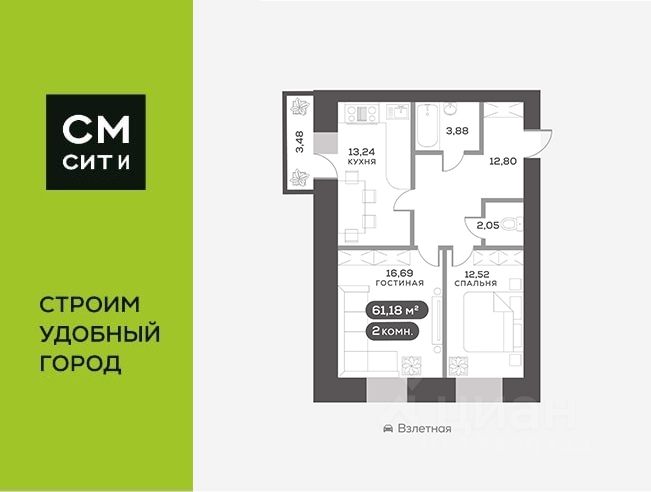 продам 2-к, Взлетная, 48/111 500 000 ₽