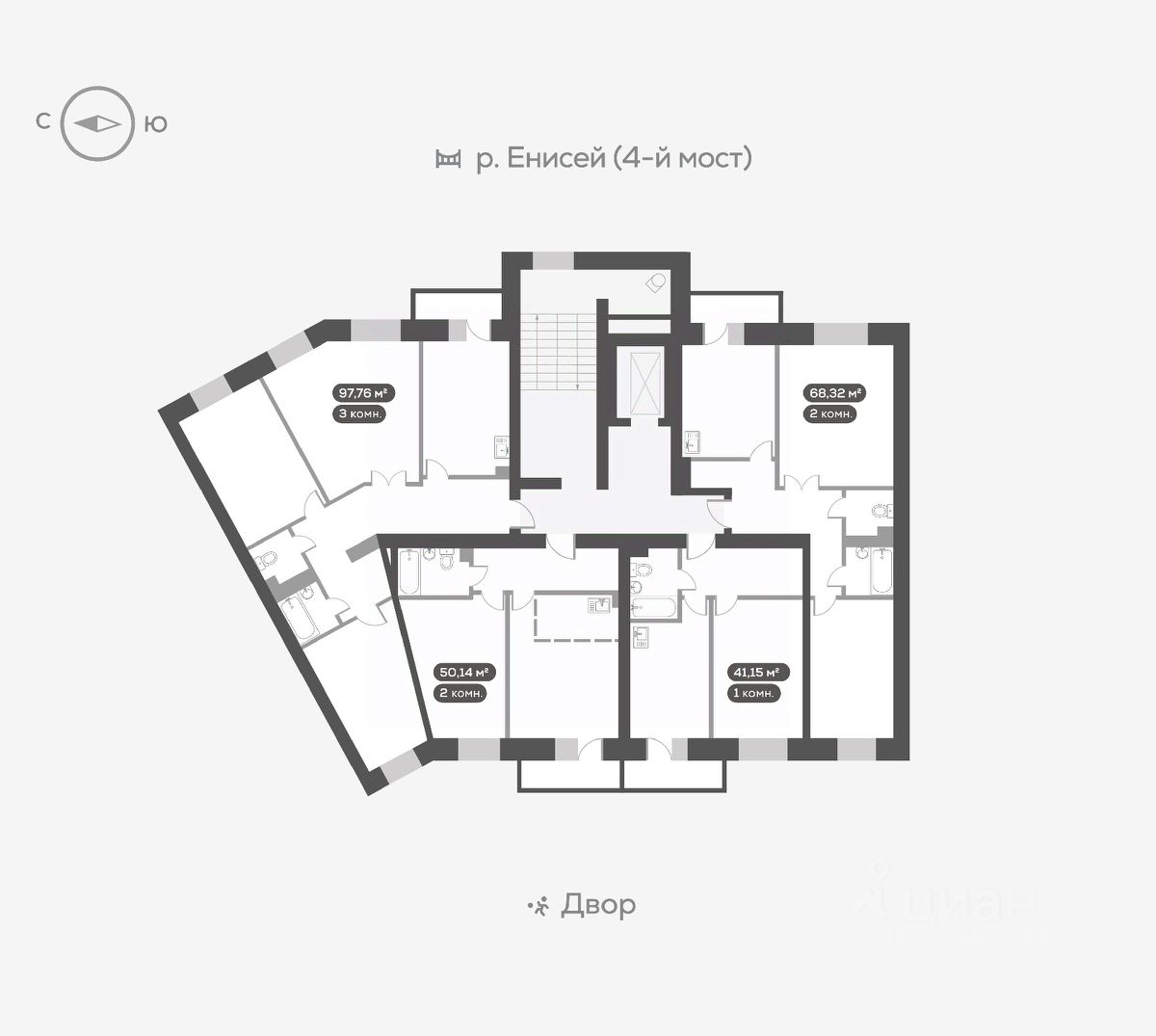 Новый Академгородок - сити-район из восьми кирпичных домов-кварталов на берегу Енисея.