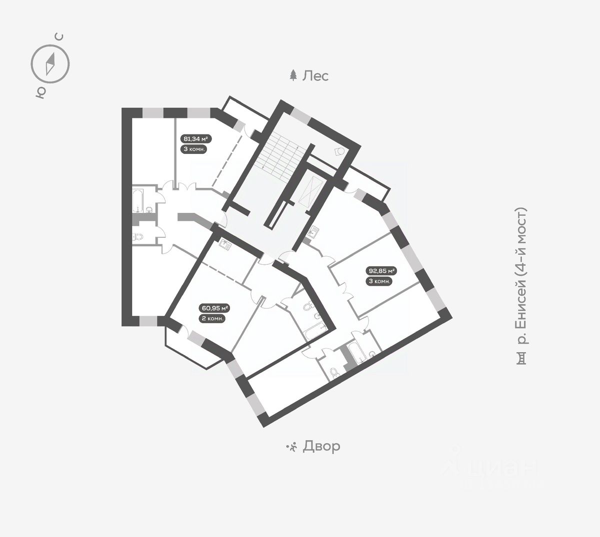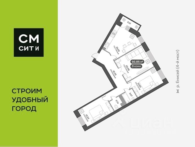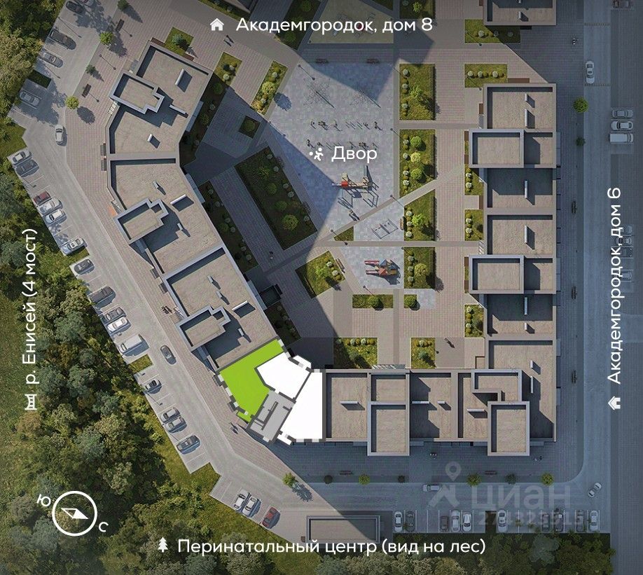 Новый Академгородок - сити-район из восьми кирпичных домов-кварталов на берегу Енисея.