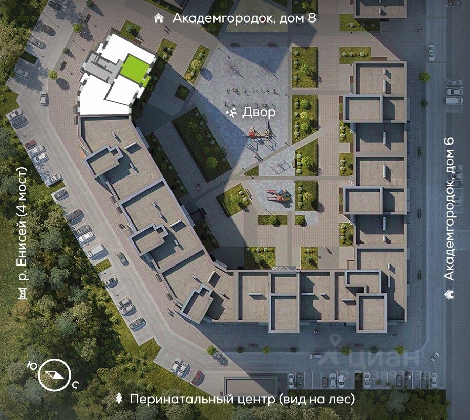 Новый Академгородок - сити-район из восьми кирпичных домов-кварталов на берегу Енисея.