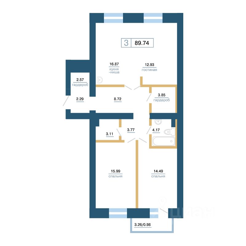 Общая площадь87,89 м2
