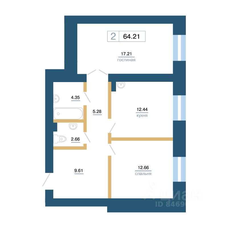 Общая площадь62,7 м2