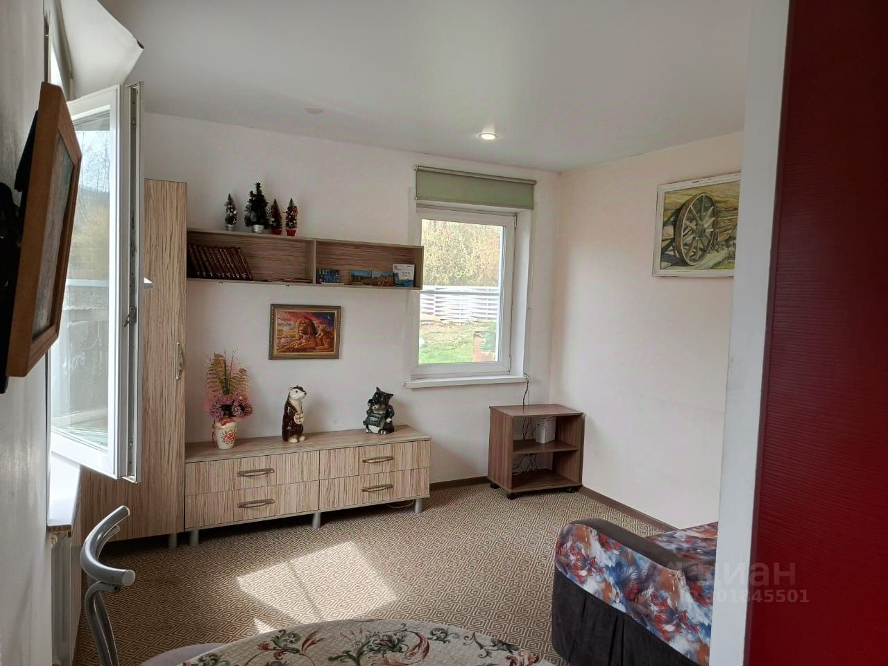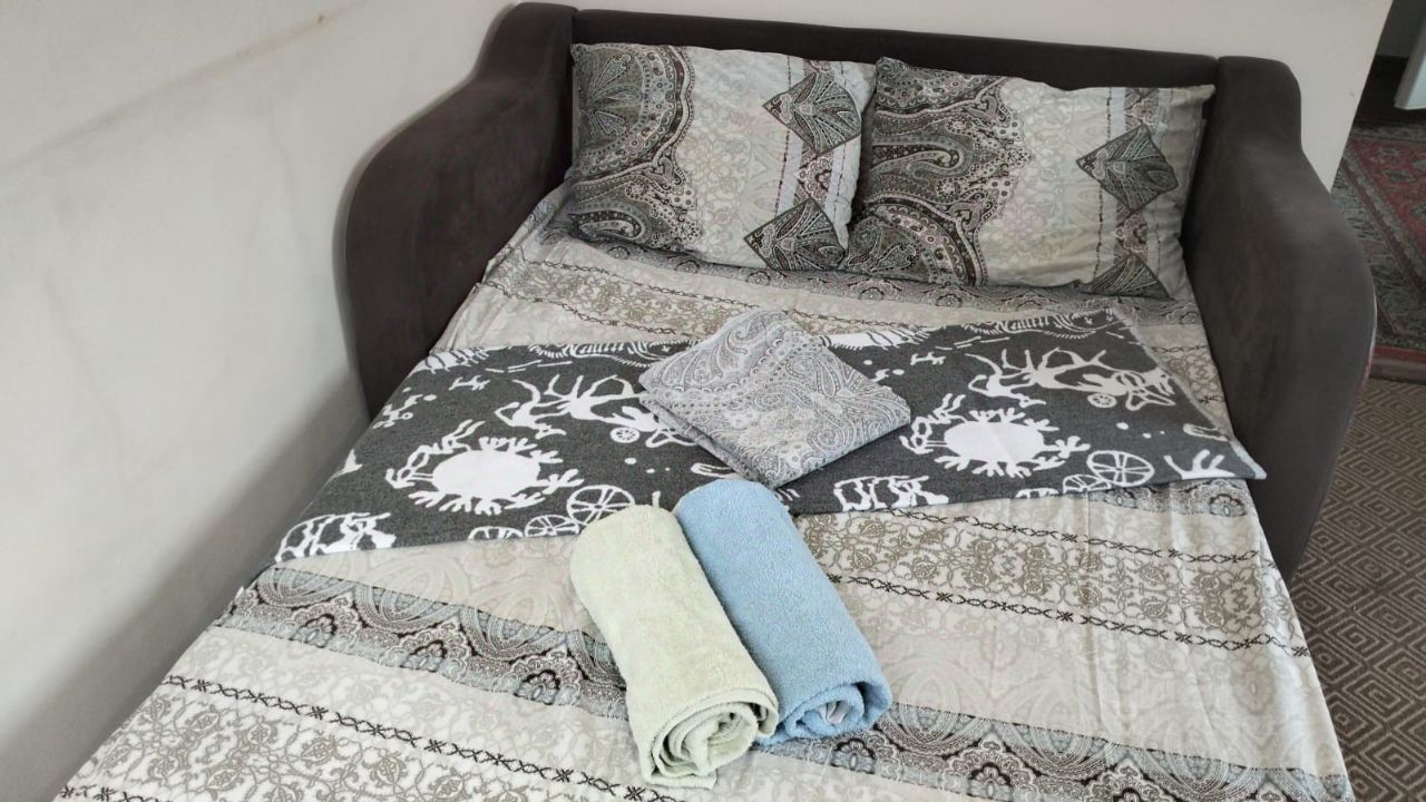 Дом благоустроенный в г. Красноярск, открытой планировки (гостиная,кухня,спальня в едином пространстве, прихожая и санузел изолированы, есть гардеробная комната). Кровать двухспальная шириной 160см., диван раскладной шириной 120см.