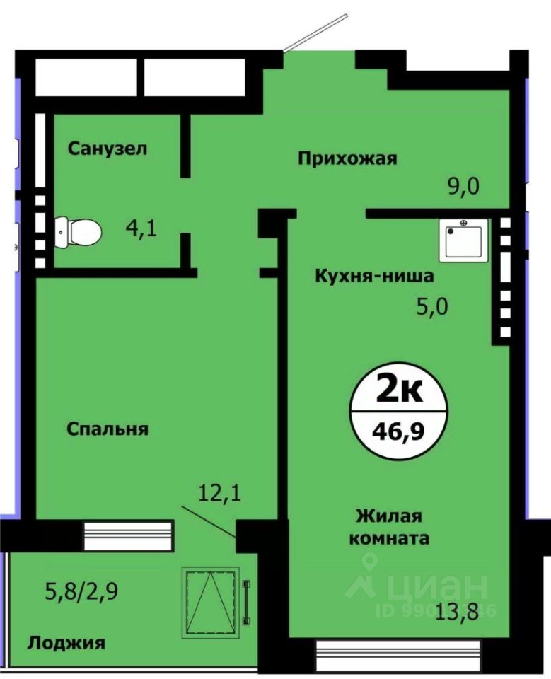 Продаётся 2-комнатная квартира в сданном доме (Лесников, 51 (Жилой дом Стрелка, Корпус 1)), срок сдачи: III-кв. 2024, общей площадью 45.8 кв.м., на 4 этаже. Дом сдан. Семейная ипотека НЕ ПОДХОДИТ!