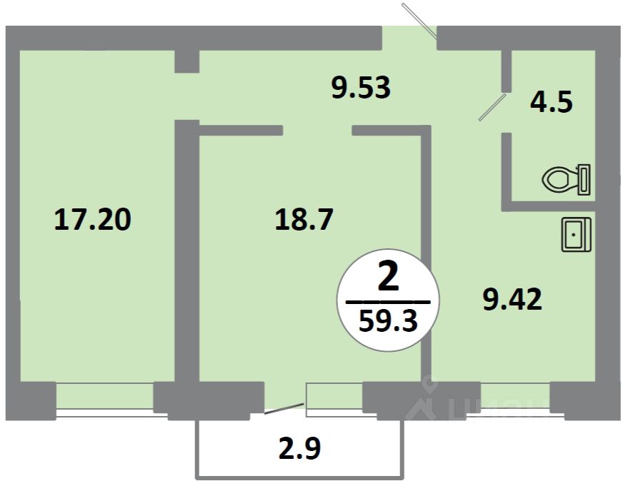 Продаётся 2-комнатная квартира в сданном доме (Соколовская, 52 (Дом 11)), срок сдачи: III-кв. 2024, общей площадью 59.2 кв.м., на 10 этаже.