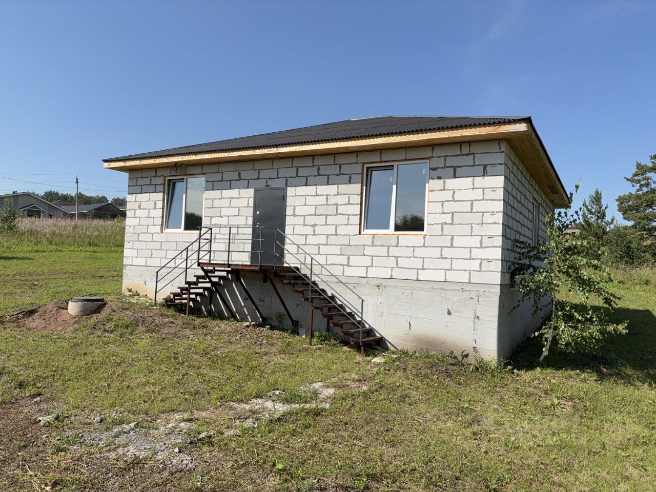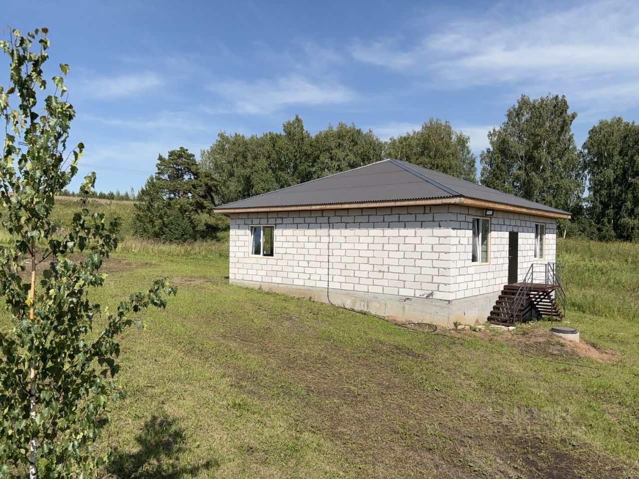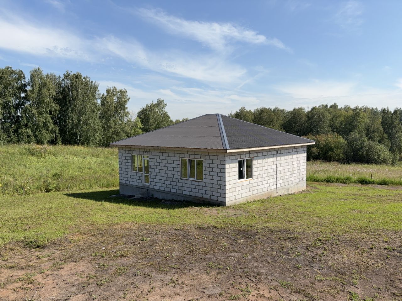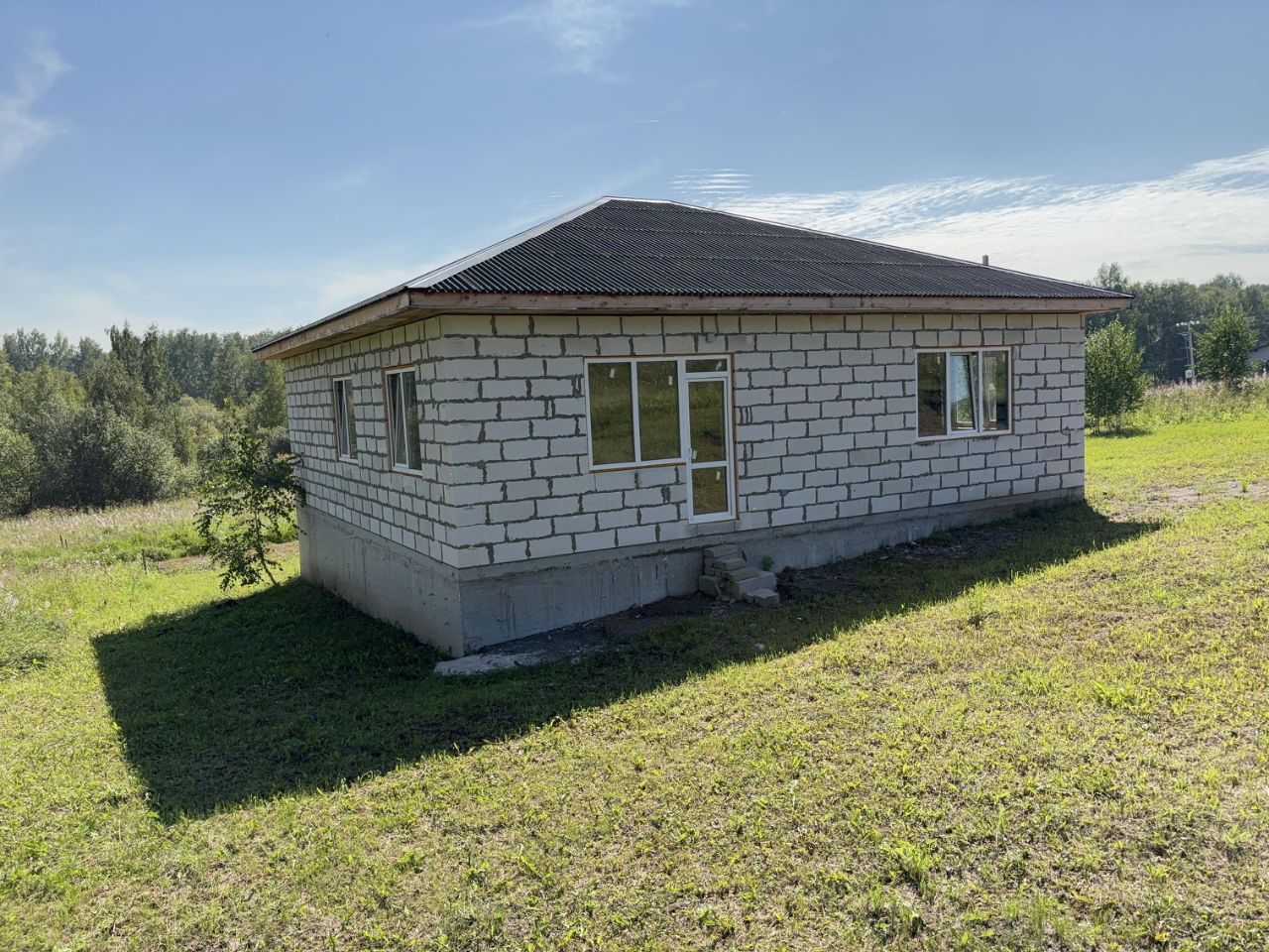 Дом из газоблока 400, фундамент высокий, основательный, лента + бурозаливные сваи. Обратная засыпка, залита бетоном. Крыша ондулин, утеплена эковатой, окна пятикамерные. Пол утеплён пенопластом 10 см. Пол - ровная полусухая стяжка. Дверь с терморазрывом, Лигранд Медведь 1.0. Мини-котельная ЗОТА, тёплый пол, трубы металлопластик, выкладывался по проекту (прилагается). Свет 15 кВт, 3 фазы, СИП-кабель. Электрика разведена, коробки, розетки. Вода центральная, заведена в дом, разводка труб и канализации тоже сделаны, септик 6 кубов. Крыльцо металлическое + доска 50, основание ступеней забетонировано. Запроектирована терраса со стороны двора. Хорошее место, в конце улицы, с двух сторон нет соседей. Участок граничит с берёзовой рощей.
