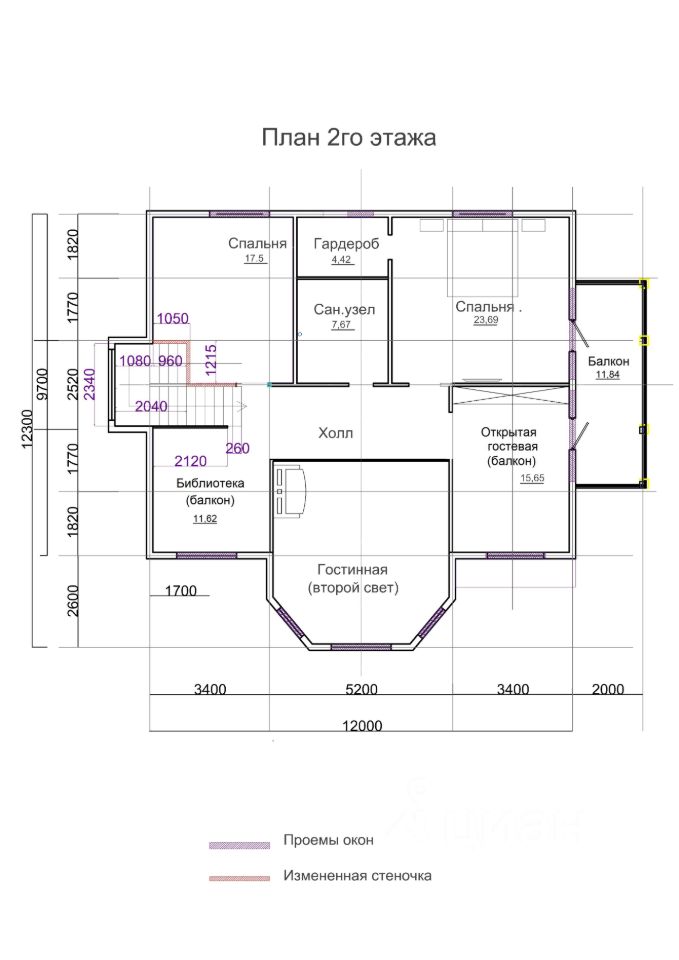 2 этаж мансардного типа, высота 2,6 м