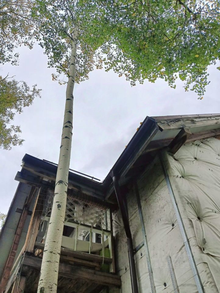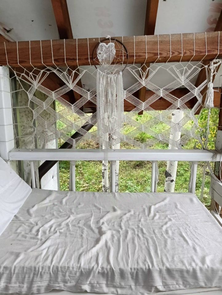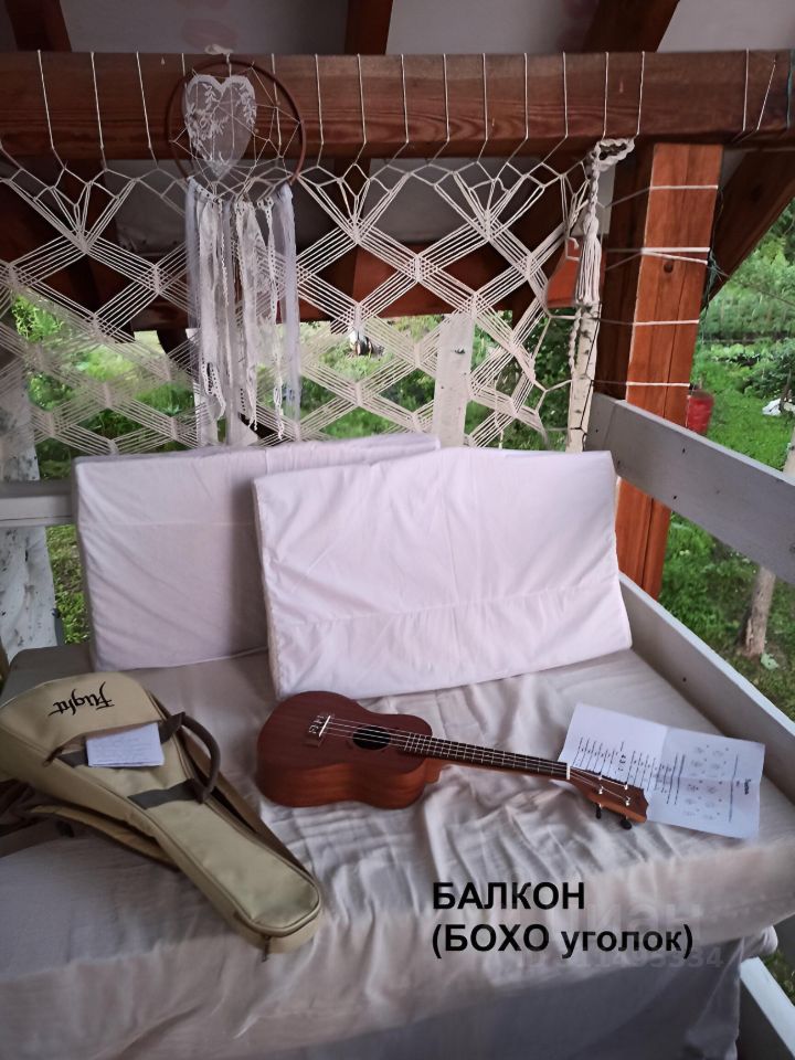 В деревянном доме легко дышится, особенная атмосфера спокойствия и уюта, что отмечают гости. С балкона открываются красивые виды на лес и зелёный двор.