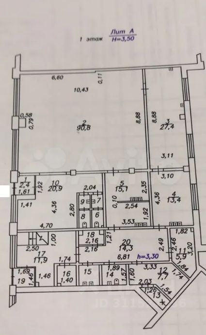 • Высота потолков 3,30м.
