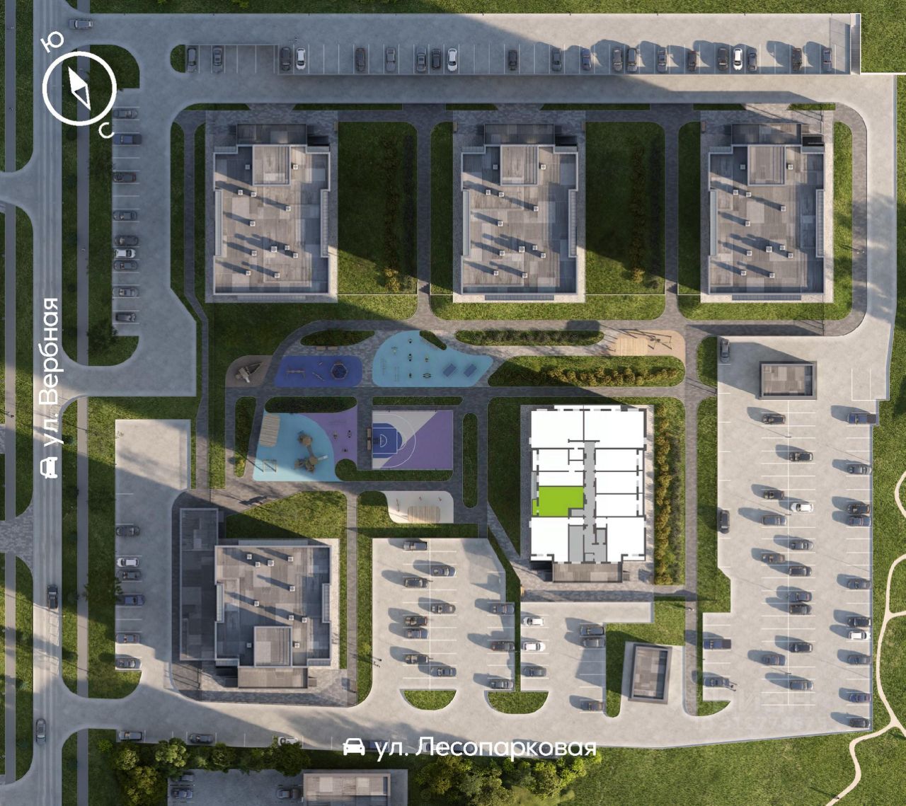 Белоснежные дома рядом с большим Эко-парком Гремячая грива. Просторные закрытые дворы, парадный вход с консьержем. Собственное уличное пространство с оживленными кафе и магазинами, необычными скамейками, зеленью и цветами, изящной подсветкой.