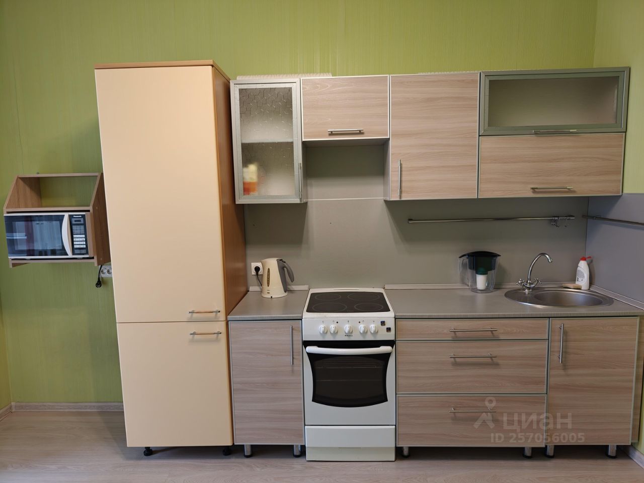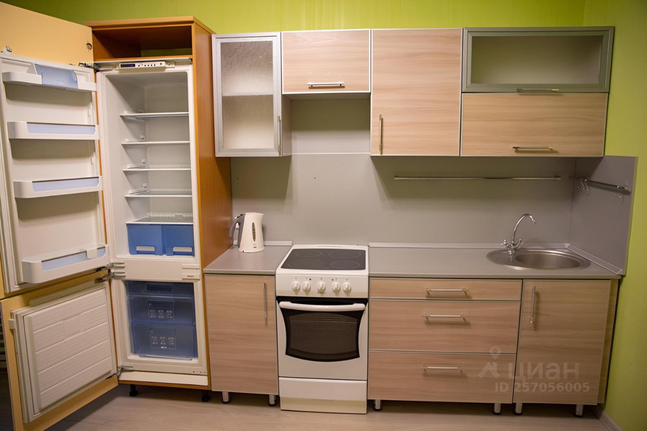 В квартире сделан косметический ремонт, установлена необходимая бытовая техника: холодильник, телевизор и стиральная машина. В комнате и на кухне есть вся необходимая мебель. Планировка включает одну лоджию и совмещённый санузел с душевой кабиной. Есть все необходимое для длительного проживания.