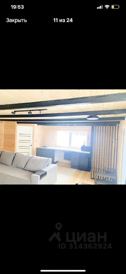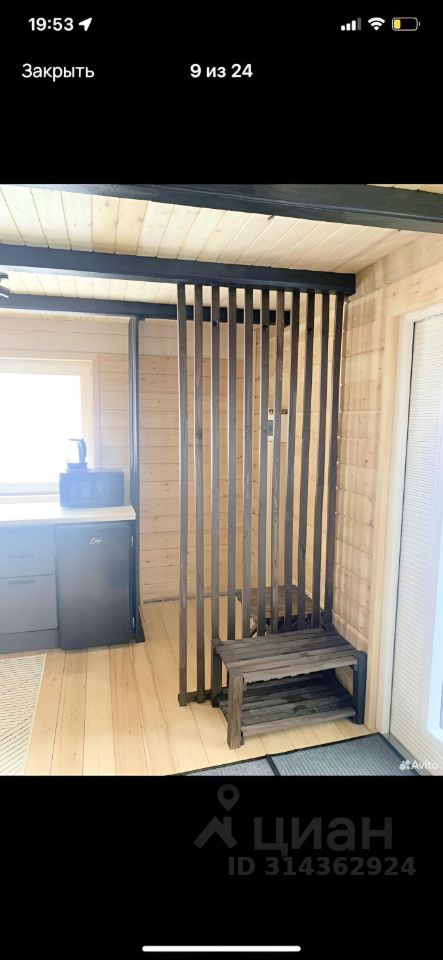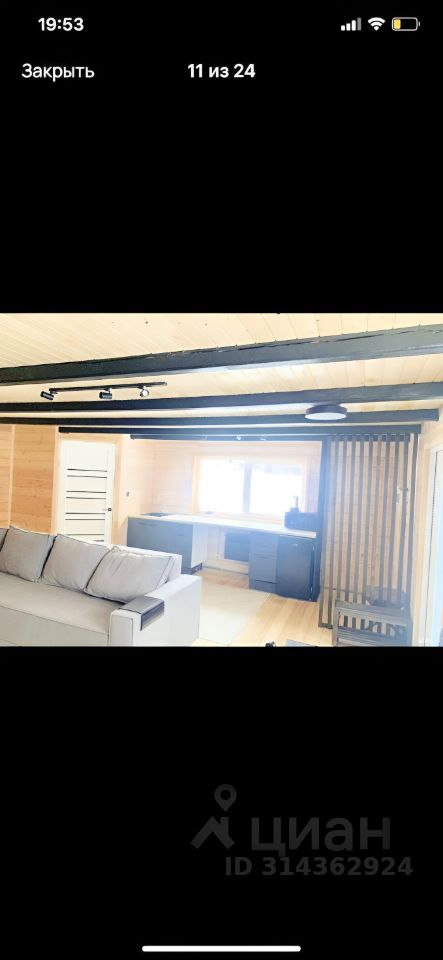Дом брусовой 100х150, одноэтажный. Планировка: - Кухня-гостиная с каминном 35кв.м., - Спальня 9кв.м., - Санузел 3кв. м. - Сауна в доме 9 кв. м, с душевой Техническая часть дома: Фундамент свайно-винтовой. Стены утеплены снаружи минватой 100мм, фасад облицован металлическим сайдингом с деревянными вставками. Перекрытия крыши утеплено минватой 200мм. Также полы утеплены минватой 150мм, пол застелен чистовой доской из сосны. Внутри стены обшиты дополнительно имитацией бруса, для того чтобы можно было скрыть все коммуникации за стеной. Вода со скважины 12м, стоит система фильтрации . Отопление электрический котел Zоtа на 7,5кВт., биметаллические радиаторы. Септик на 3 кольца. Электричество 15кВт. В парной стоит печь Искандер 25. Которой с запасом хватит на 9кв. м.