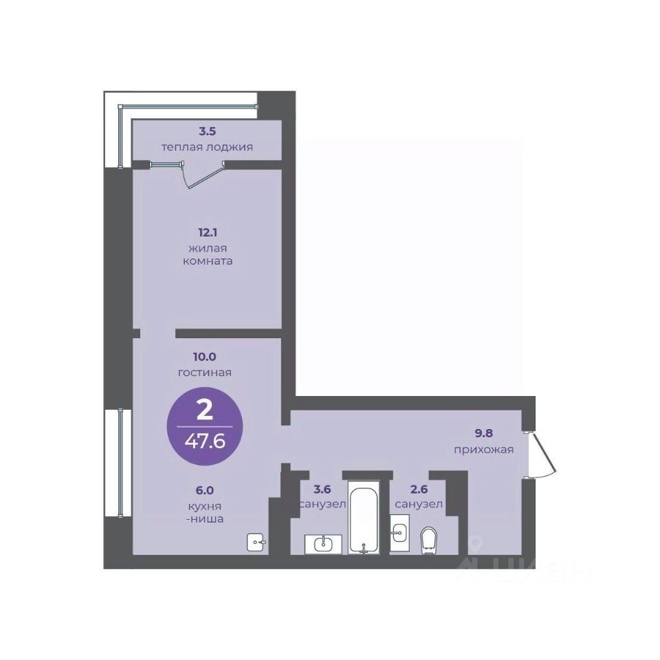 Общая площадь47,6 м2