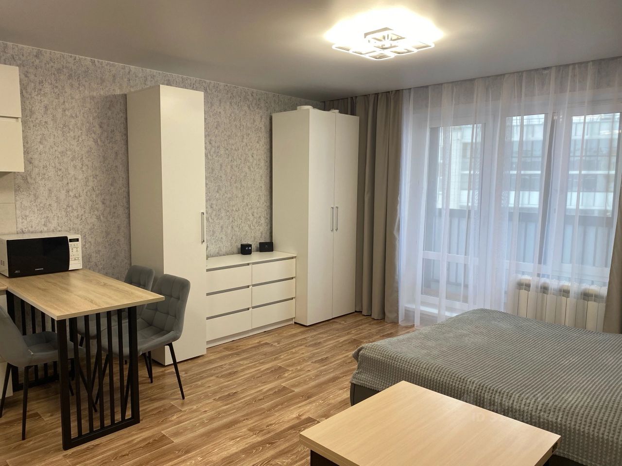 Квартира с евроремонтом, полностью готова к проживанию. В комнате и на кухне есть вся необходимая мебель. Для вашего удобства установлены холодильник, микроволновая печь,плита, духовка, телевизор и стиральная машина. Ванная комната оборудована ванной, а совмещённый санузел выполнен в современном стиле. Также в квартире есть интернет, что позволит оставаться всегда на связи.