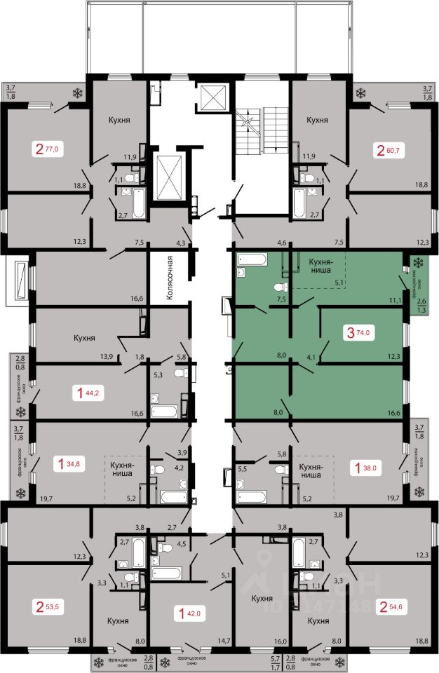 Продаётся 3-комнатная квартира в строящемся доме (Дом 2), срок сдачи: IV-кв. 2026, общей площадью 74 кв.м., на 14 этаже.