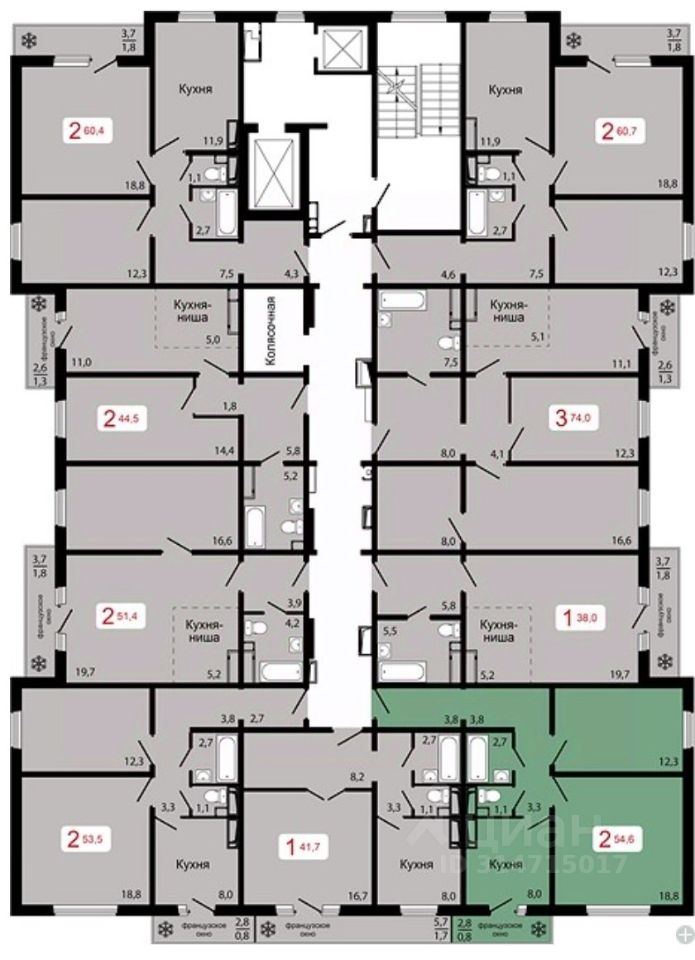Продаётся 2-комнатная квартира в строящемся доме (Дом 1), срок сдачи: IV-кв. 2026, общей площадью 54.6 кв.м., на 7 этаже.