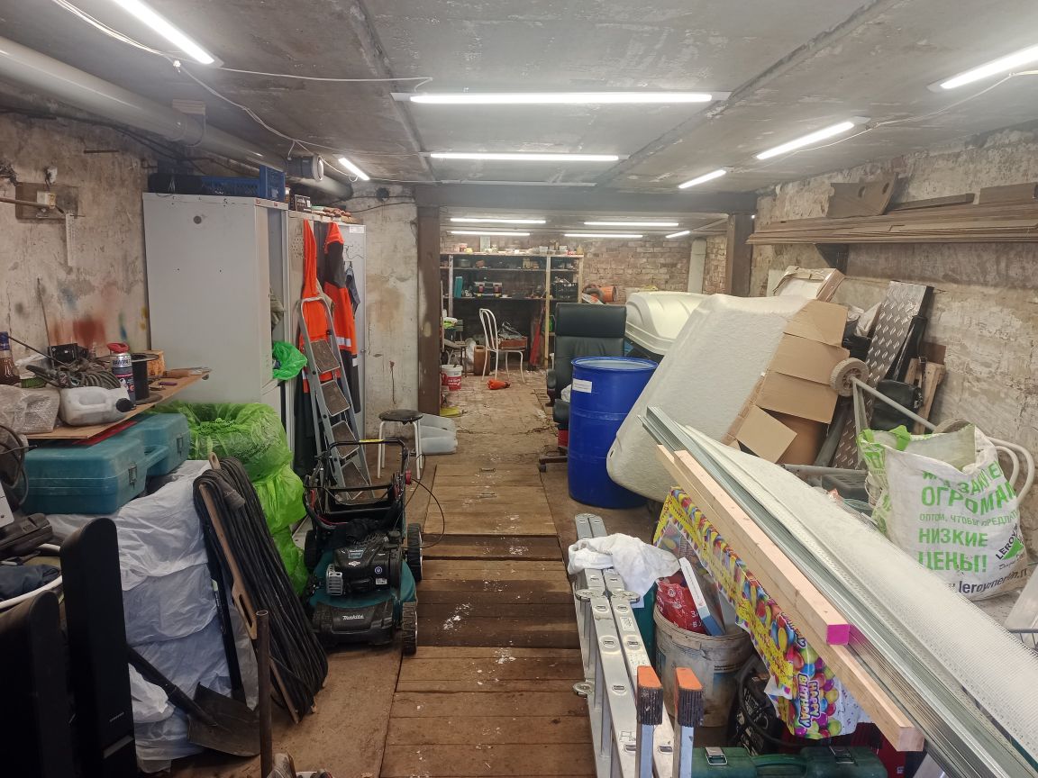 Площадь гаража более 60м² - 1й этаж, тех комната - 15м², подвал - 5м². Свет - 380/220, прямой договор с МРСК. Документы на землю и строение.